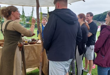Our full set-up includes period tent/s and authentic living history encampment, up to 3 authentically costumed reenactors and of course, our unique, interactive herbal apothecary featuring a wide variety of plants and herbs, and reproduced examples of traditional remedies and medicines of the era.