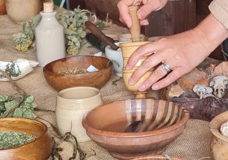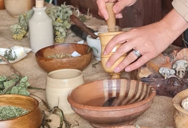 We also offer crafting activities, workshops, talks, demonstrations including live recreations of historical herbal medicine-making, to suit all ages. We may also have small batch plant-based products available for sale.